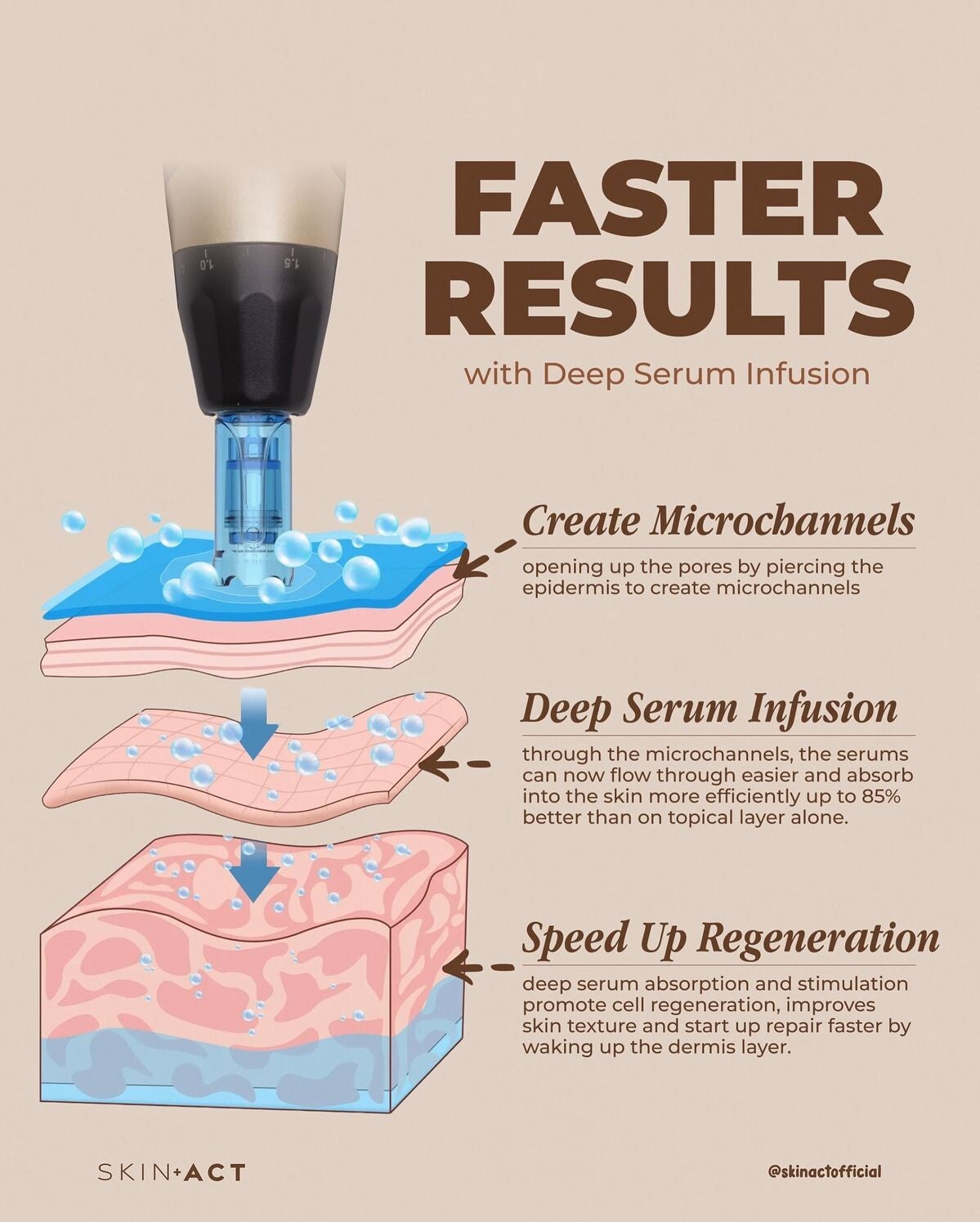 Dankzij de micronaaldjes kunnen actieve werkstoffen tot wel 80% dieper in de huid doordringen dan bij een traditionele behandeling.